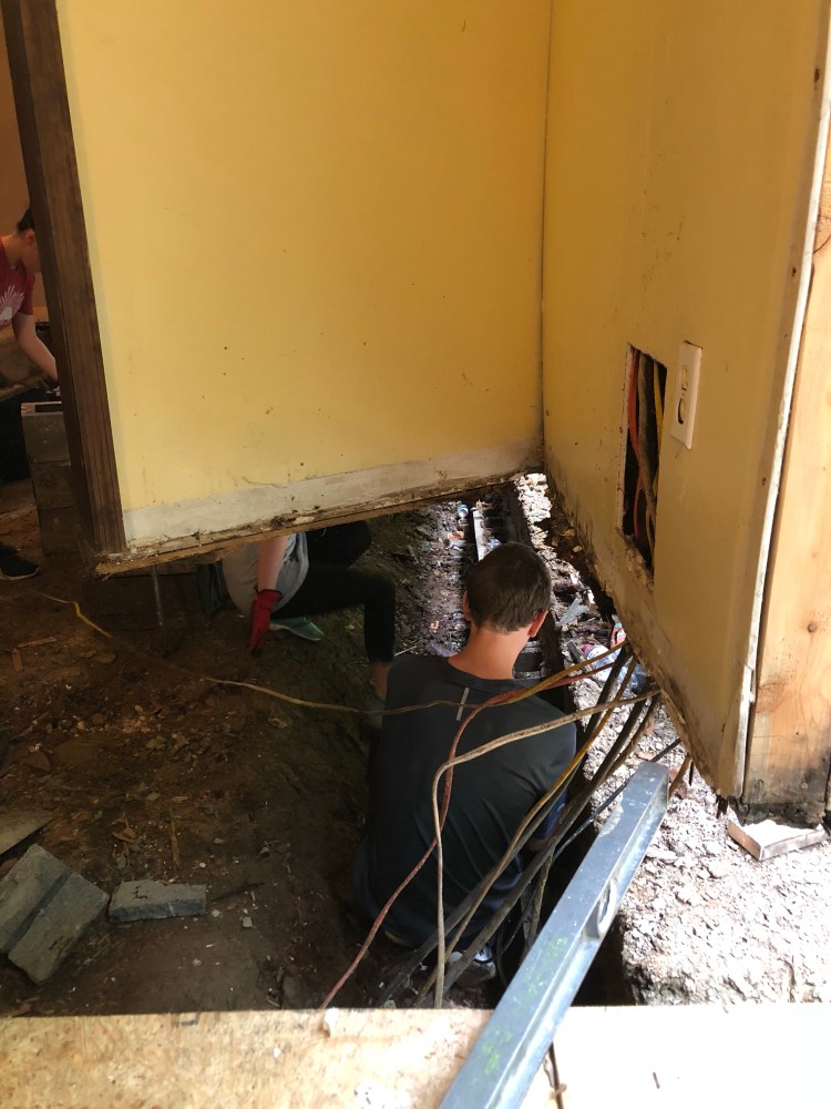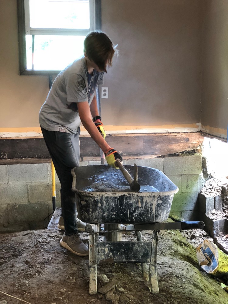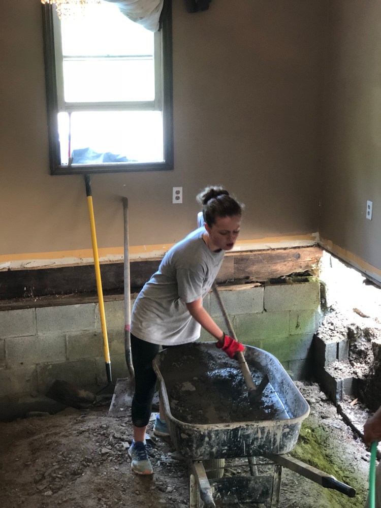 My name is Abby Groom, and today was probably the hardest work day I have had all week. The day started off right away, and we had to pick up many heavy cinder blocks and move them. Then we needed to clean the dirt and old cement off of them which doesn’t sound bad, but it took forever and was very difficult. I was starting to think why am I doing this and got kind of negative, but then I remembered that I am here to help someone and that this will really change their life because they live in this home everyday and need a safe stable floor. So it really opened my eyes because I saw all that the hard work and how it didn’t feel so great while I am doing it; afterwards it feels great because I get to see all the awesome work I have done.
