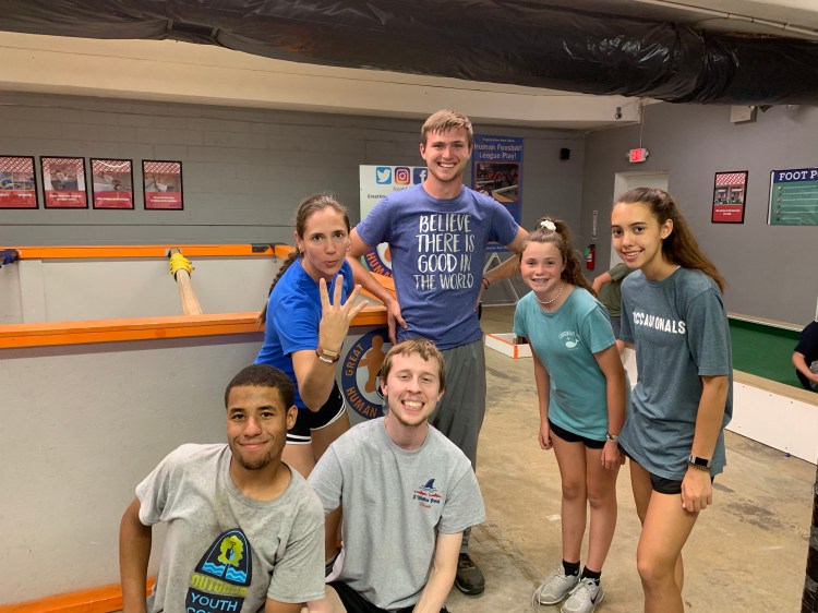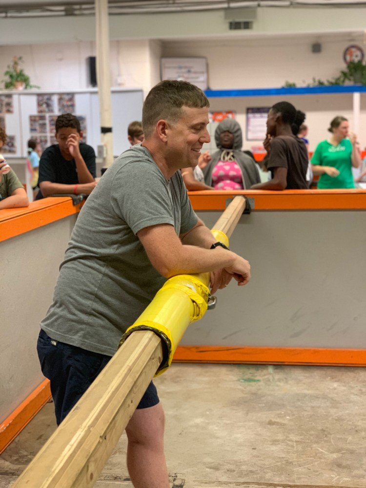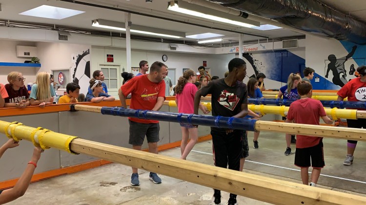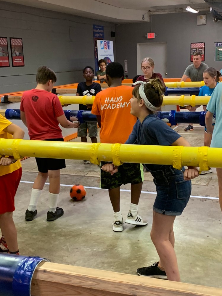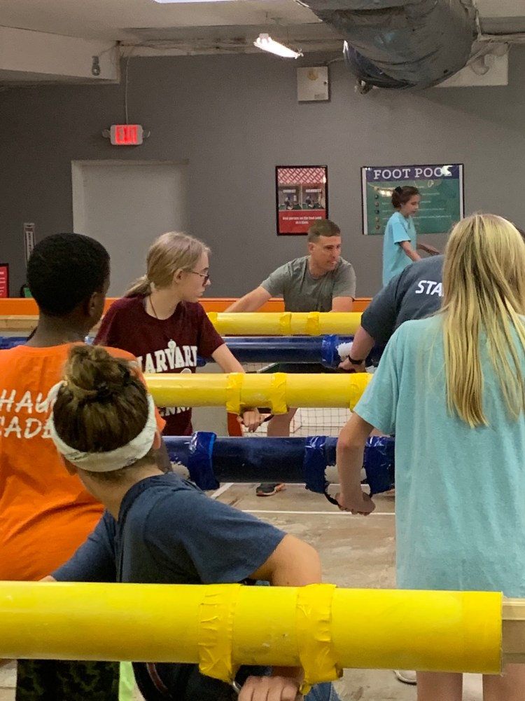 This afternoon we went to a human foosball building. We walked into this room with a bunch of games that were life sized like foosball and chess. There were a lot of people we didn’t know but ended up talking with them and making new friends. We played a tournament of human foosball and my team didn’t get very far, but it was fun and the team that won was England. It was a really fun night, and we met really nice people.