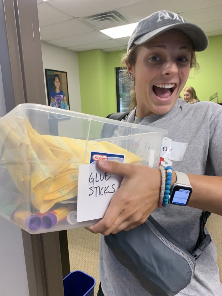 Taylor (sophomore in college): Today was our first day in Nashville. We started our day with dropping the boys off at a food pantry while the rest of us headed to Souls for Soles to collect school supplies to take back to Safe Haven. One packed in the van we headed back to safe haven and unloaded the van, and then reloaded the van with more housing supplies. We then picked up the boys from their mission, and brought them back to Safe Haven. We then did some more stuff there and spent some time digging deeper into homelessness and learning some personal stories from people who have experienced homelessness through watching a video. We then spent some time outside, and went back to the church to eat a meal provided by Woodland Christian Church. I’m looking forward to the ways we can help the community in Nashville, and am hoping to build better connections this week and see God through our mission.