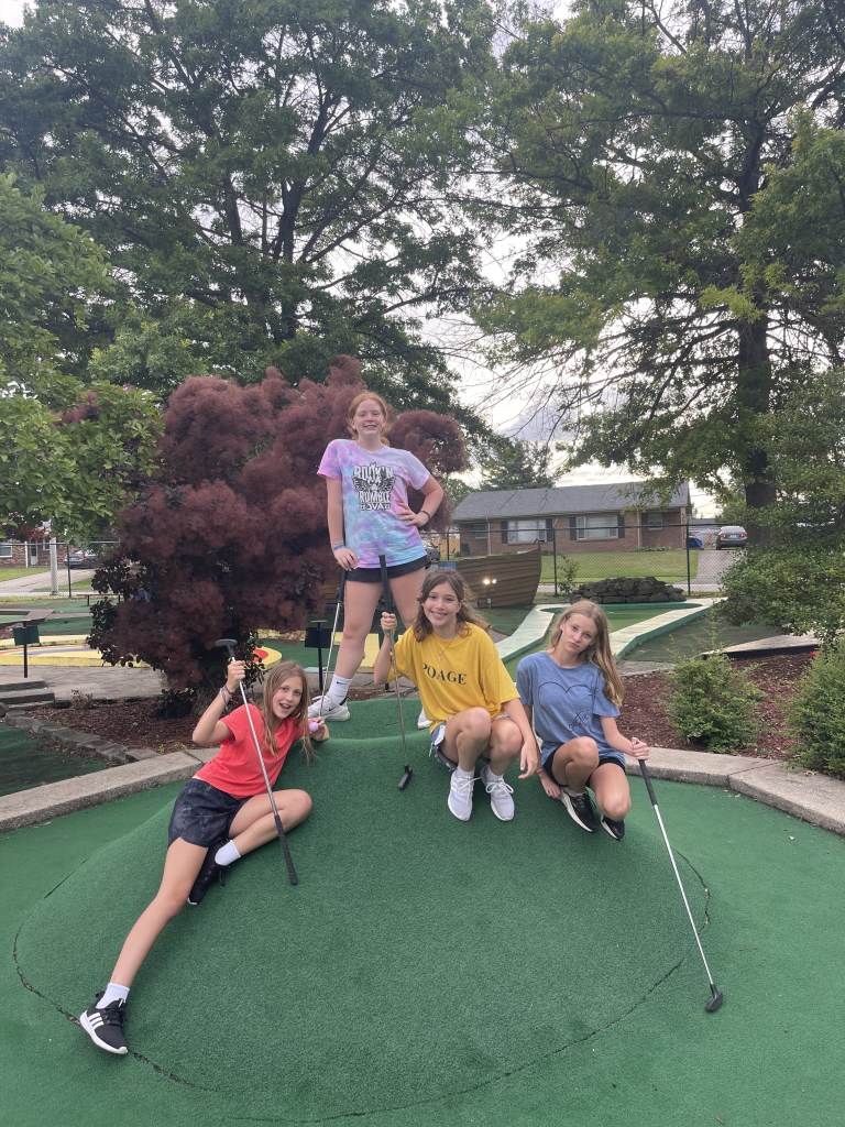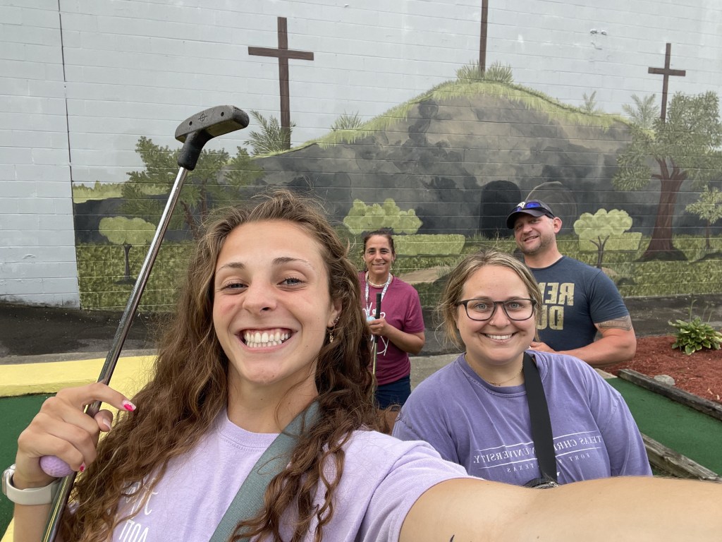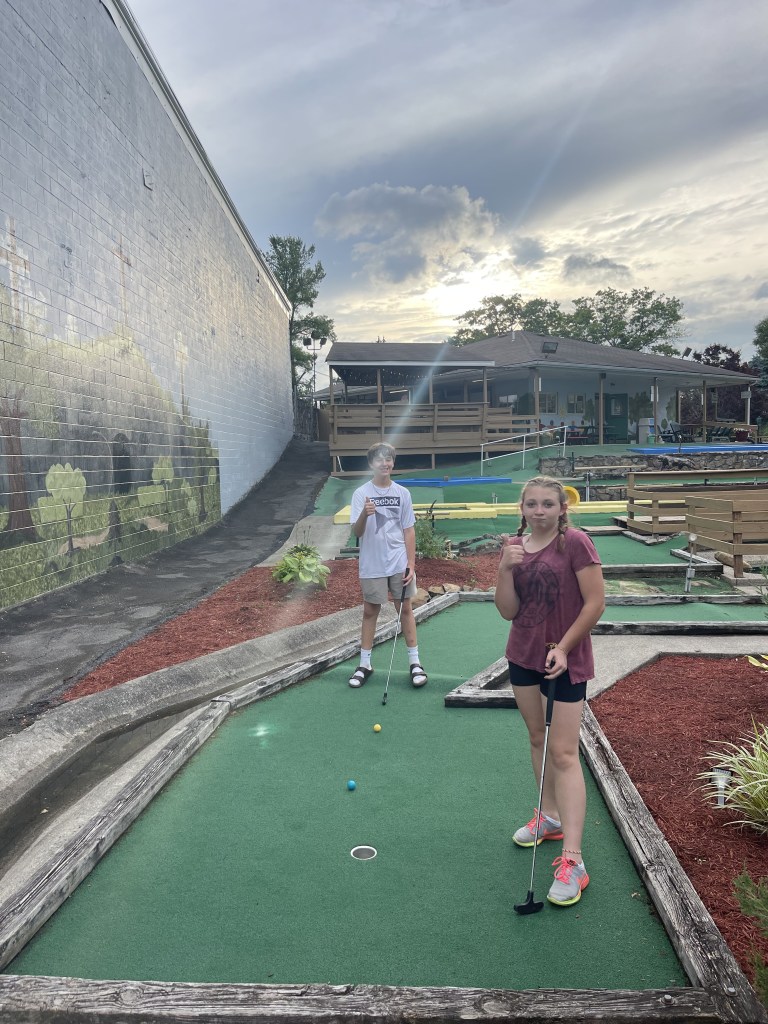 Today for our Tuesday adventure we started the day off early by going to Chrysalis House. There we cleaned the kitchen and scraped the ground, under the serving line. It was a good experience to see how everything worked and how they are helping out to many women . We came back for a break and went to Nathaniel Mission and made food boxes for seniors and made cute cards for them. We also helped pick up trash around their campus and had a good time! We had a special delivery from Pastor Kyle with dinner, the Kentucky staple: Ale 8! We then came back and went mini putt-putting, super fun! Our day was very fun and adventurous! I loved seeing how these places can provide all of this stuff to people how great!