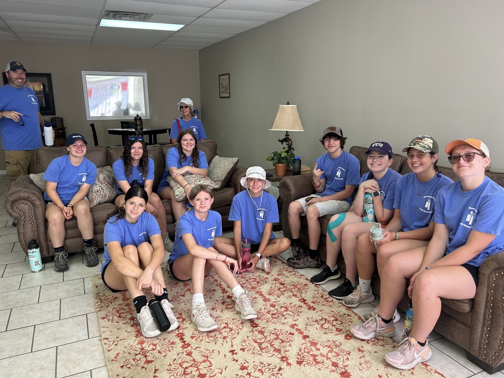 We had a great day working as Abby said above. After we got back to the church we all took turns showering before we got on a zoom call with Caroline from Week of Compassion and discussed the work we are doing in Mayfield and how we can help when we get back home. After our call we played a game where we were knotted together and tried to get untied which was a struggle. We also played a trivia game about what we’ve done and who we’ve worked with so far this week. Then we had a pasta dinner and had fun bonding and watching the Teen Beach Movie.