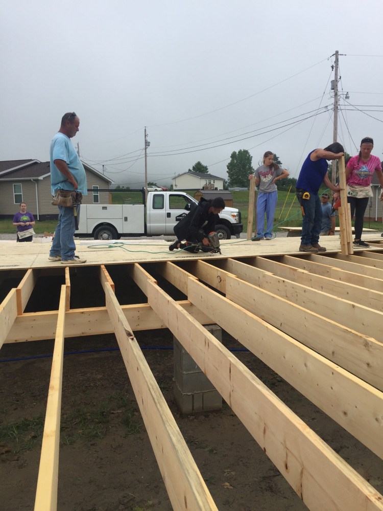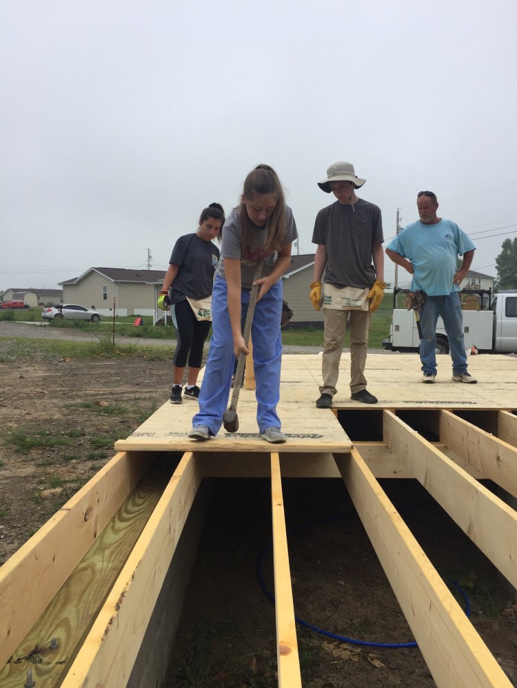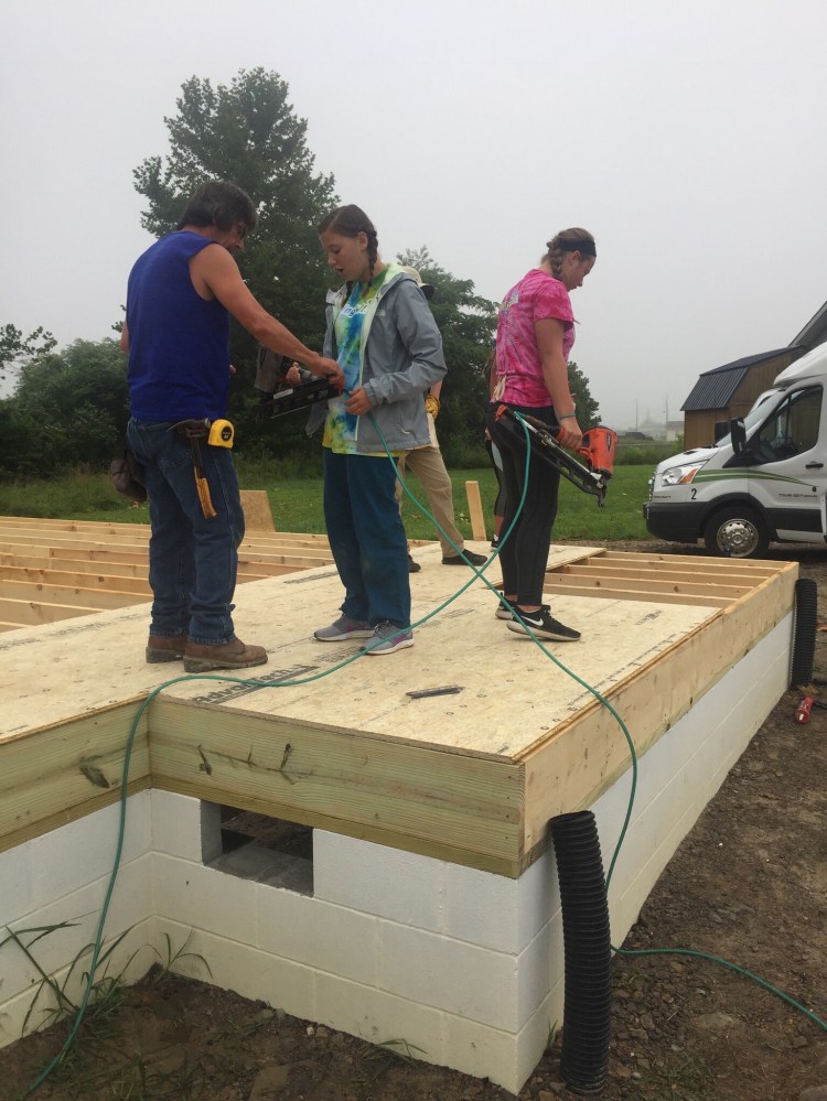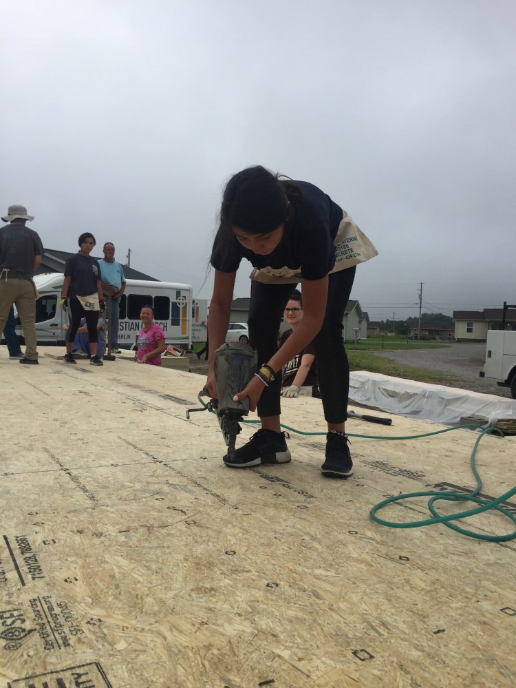 Hello everyone, we are Shelby and Olivia and this is our third mission trip. We’re both in the new construction group. Today at the work site it was a really cool experience because all of us got to see how much progress we have made over the past two days. Shelby’s favorite part of the work site is the nail guns. Olivia’s favorite part is the sledgehammer. Today we nailed the ply wood down and got two walls put together which both made a big impact on the progress like we said earlier. We also love how patient and understanding the contractors are. They know when we need a break and when to push us harder. Overall I would say today was a pretty successful day with all of the work we got done in the time we had.