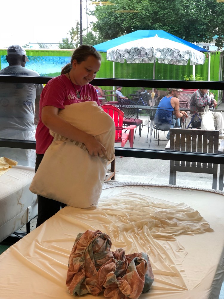 I am Ava and I’m here to talk about my day. This is my second mission trip with Geist Christian Church. Today, I woke up at 5:30 in the morning to go to Hope Center to serve breakfast to disadvantaged men. It was incredibly eye opening to see that these people were living in poverty, but still smiling and thanking us for coming out to serve them breakfast. Later in the morning, we went to the Catholic Action Center. The Catholic Action Center is a shelter for homeless people to stay the night if they have no other place to stay. I went out into the park with some of my fellow youth to clean up the area. Many of the people who were staying at the shelter thanked us for helping them. We made the beds in some of the rooms at the shelter, and it was a very eye opening experience for me. Making the beds made me incredibly grateful that I have a home, and my own bed in my own room—and I don’t have to share it with 40 people I don’t know. After we were done at the shelter, we went to a summer camp and played with kids. Hanging out with them was also eye opening for me because we were able to have lunch with the kids, and one child told me this was the only meal he would get today. It made me sad to see these children of GOD living in such a difficult situation, but also grateful that they would at least get a meal thanks to the wonderful people who started the camp. That’s all for today, so thanks for reading! Have a very blessed day!!
