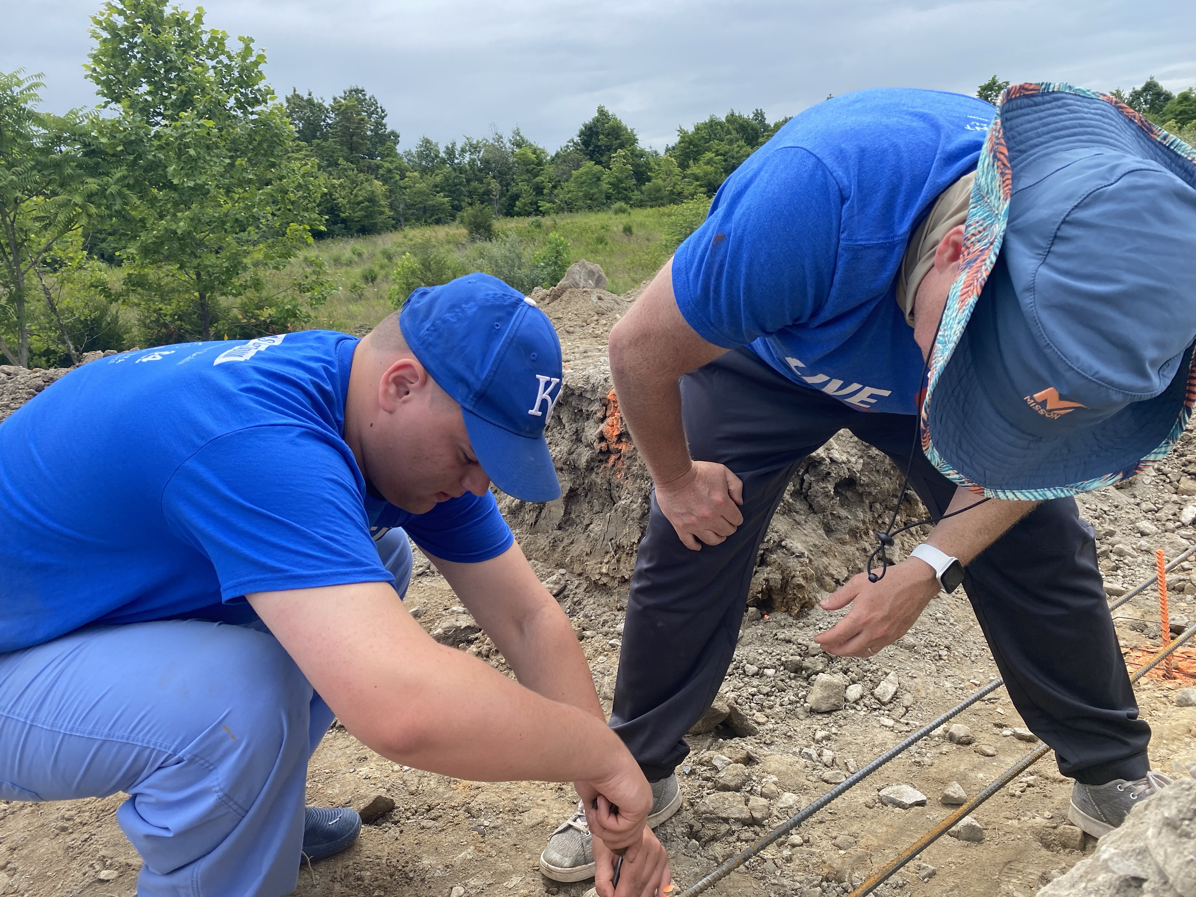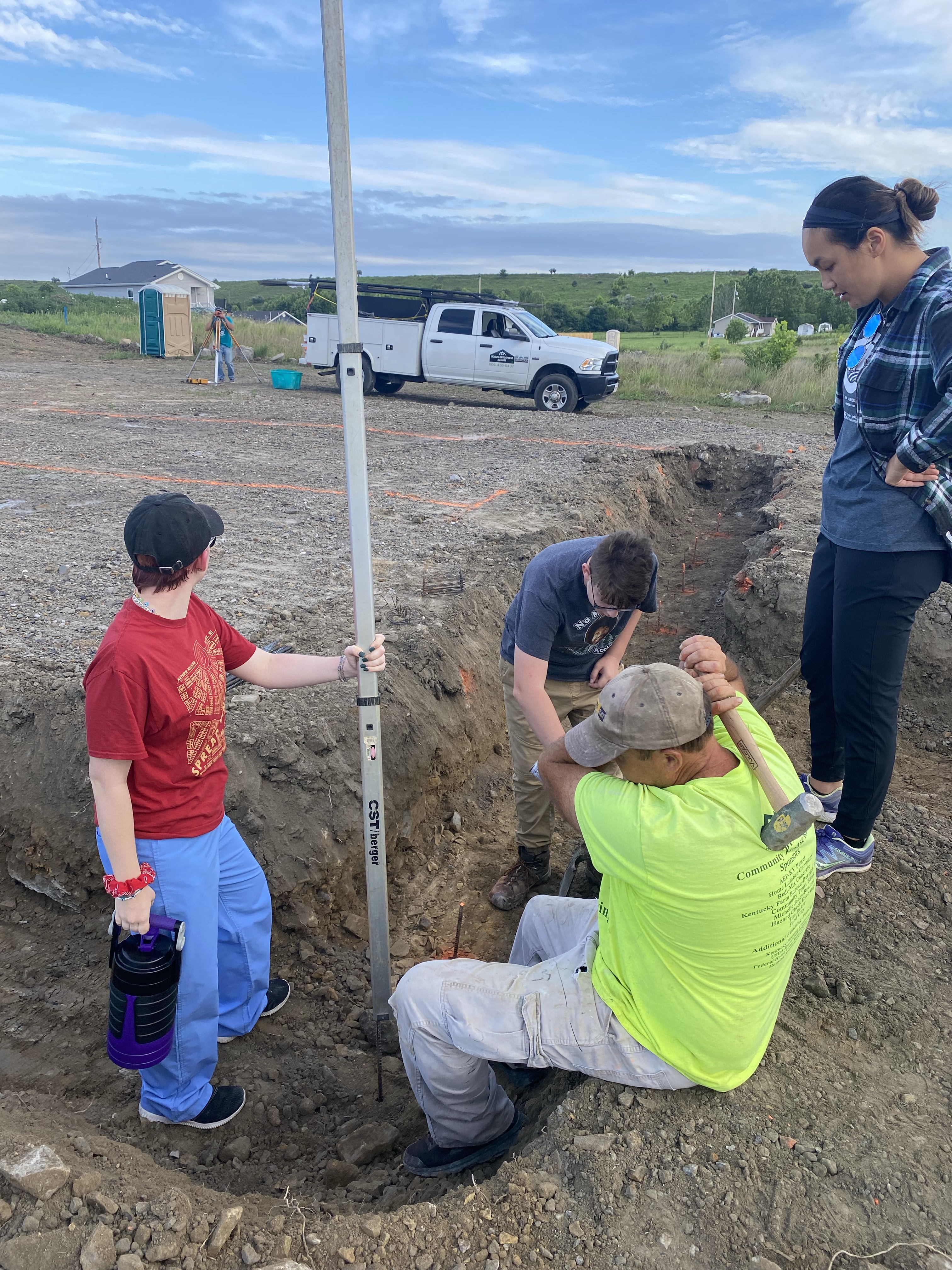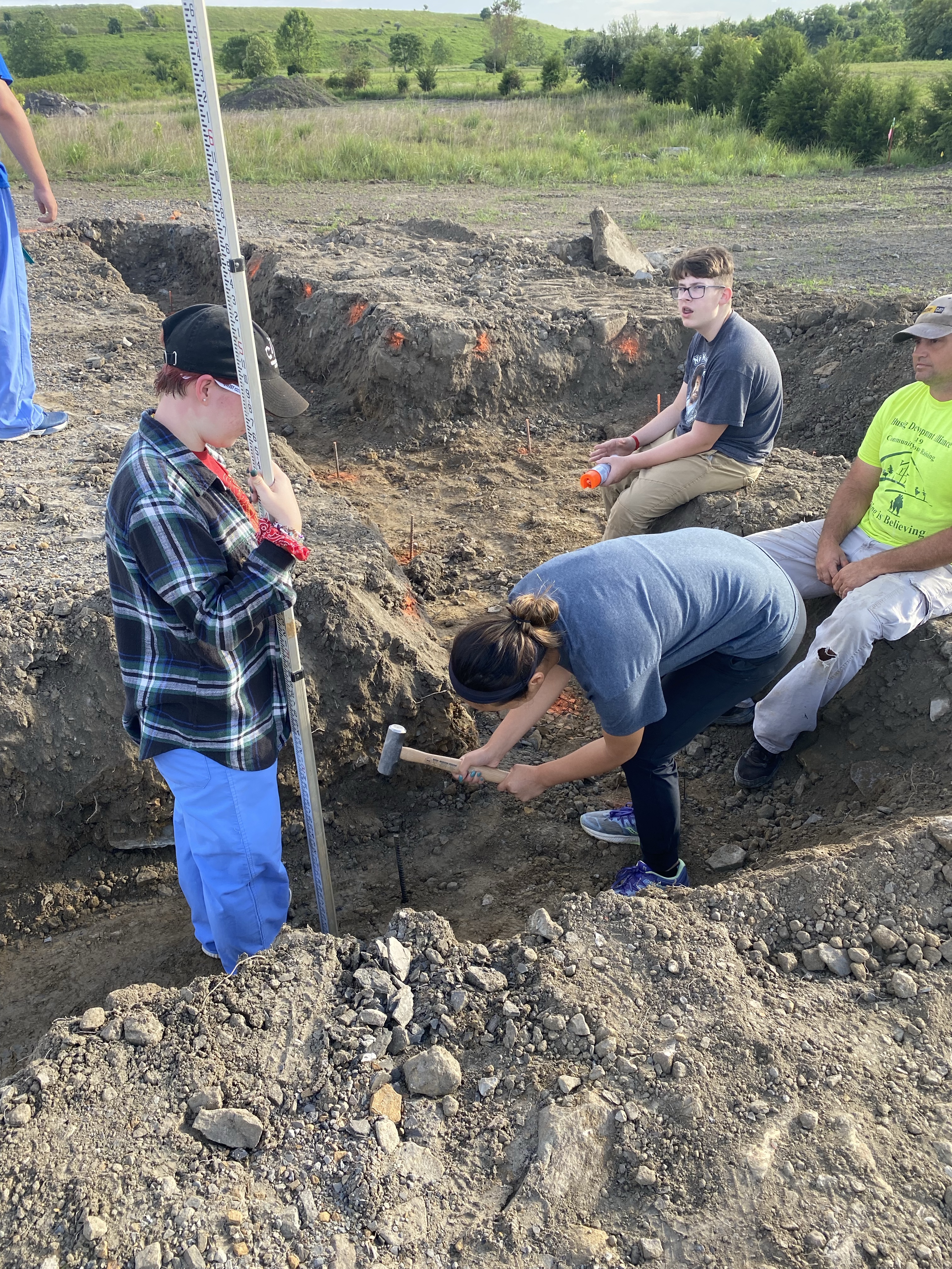 Hi, my name is Caroline Driskell and I was in group B. I am a graduated senior; this is my sixth mission trip with GCC and my second mission trip to Hazard. Today my group worked with the contractors to survey the lot and build the foundation for what will eventually be a new home in an area that has not had new developments for ten years. As the contractors dug out dirt to create the foundation, we helped make sure that everything was level, then we added reinforcements and helped spread concrete. One of the best parts of our day was talking to the contractors at our worksite and getting to know each other. The contractors were even nice enough to let us try using the backhoe during our down time, which almost made up for our 5:15 am wake up. All in all, we had a good first day and we feel ready to take on the rest of the week!
